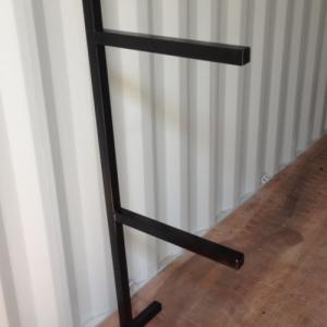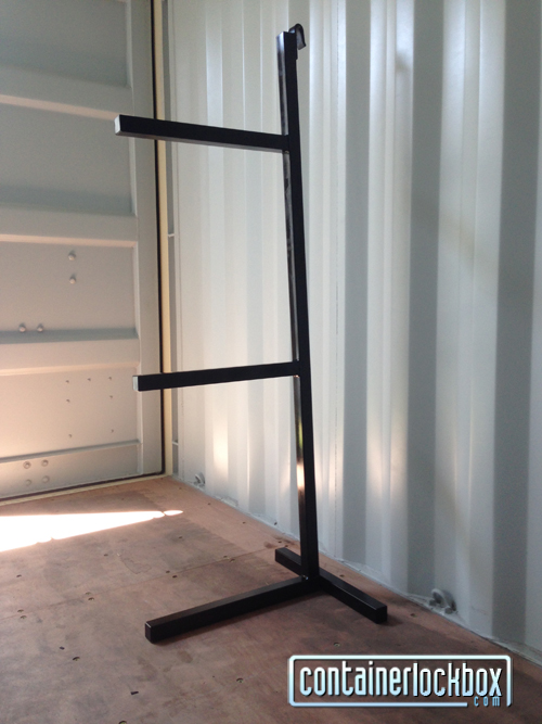 Share to: Facebook Twitter Google Plus LinkedIn Delicious Container Shelving (2x)Price: $165.00Shipping Price: $35.00 Quantity If you're using a shipping container for storage; chances are that you need strong, heavy duty shelving - and we've got the solution for you.Horizontal tabsInfoIf you're using a shipping container for storage; chances are that you need strong, heavy duty shelving - and we've got the solution for you. Our custom shelving brackets are designed to hang from the D rings inside any shipping container and provide a maximum of three shelves for storing paints, tools, automotive parts, or just about anything else that you can stack in your storage container. Each shelve bracket package is 60" tall and 20" deep. Each package comes with two brackets. Both brackets are finished with industrial sand blasting and a flat black finish to resist damage and corrosion. The bracket itself is made from 1.5" x 1.5", 0.125" steel tubing. Please note that the shelves require two 2"x10" as the horizontal support for each shelf. To save on shipping costs we are not able to supply this material at a cost effective price. Like all of our featured products, the shelves are made in the United States at our shop in Lancaster, PA. VideoVideo:
